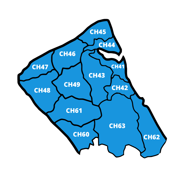 Postcode areas included in this service: CH41, CH42, CH43, CH44, CH45, CH46, CH47, CH48, CH49, CH60, CH61, CH62, CH63.